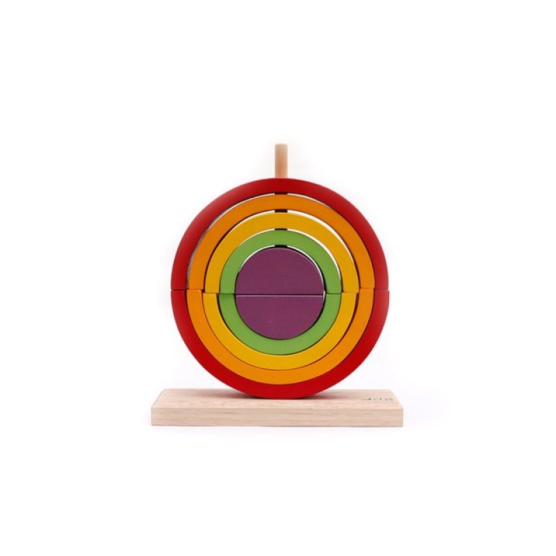 Su madera, imperfecta y natural, les da información sensorial muy valiosa. Sus piezas les ayudan a diferenciar formas y colores. Manipulándolo ganan destreza y coordinación. A través de él van comprendiendo conceptos complejos como el equilibrio, la simetría y la resistencia. Les abre la puerta de par en par al juego simbólico, a construir escenarios e imitar situaciones de la vida real.