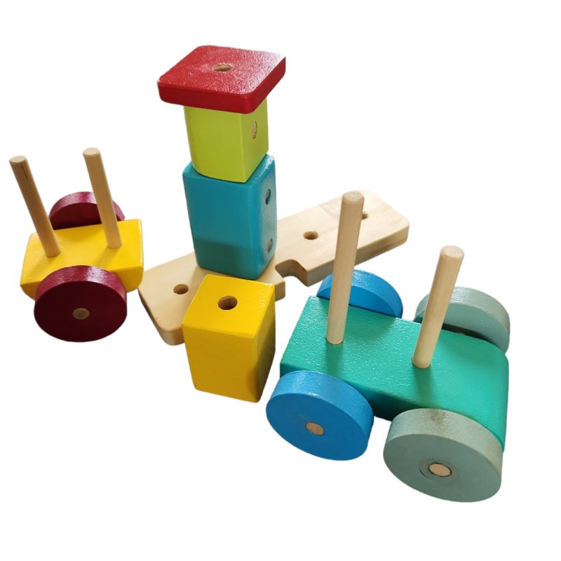 Rodado didactico de bloques desarmable, juego de ensarte, rompecabezas y arrastre.